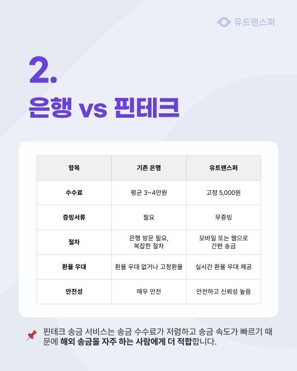 비용 절감, 빠른 송금, 편리성을 동시에 원하면 핀테크 송금 서비스가 유리합니다.