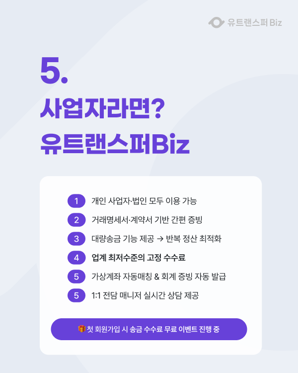 그리고 사업자를 위한 유트랜스퍼Biz까지 상세히 안내드립니다.