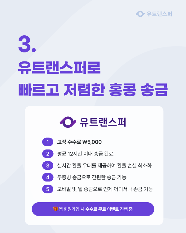 3. 유트랜스퍼로 빠르고 저렴한 홍콩 송금