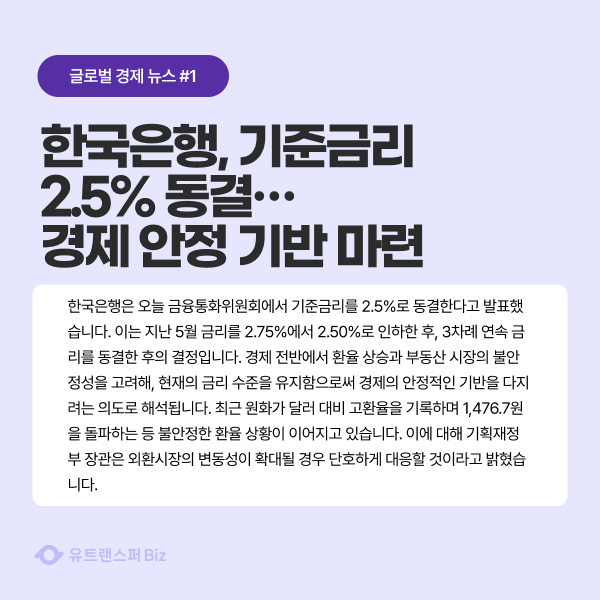 한국은행, 기준금리 2.5% 동결… 경제 안정 기반 마련