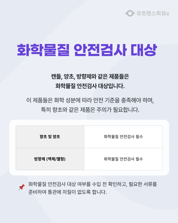화학물질 안전검사 대상 여부를 수입 전 확인하고,