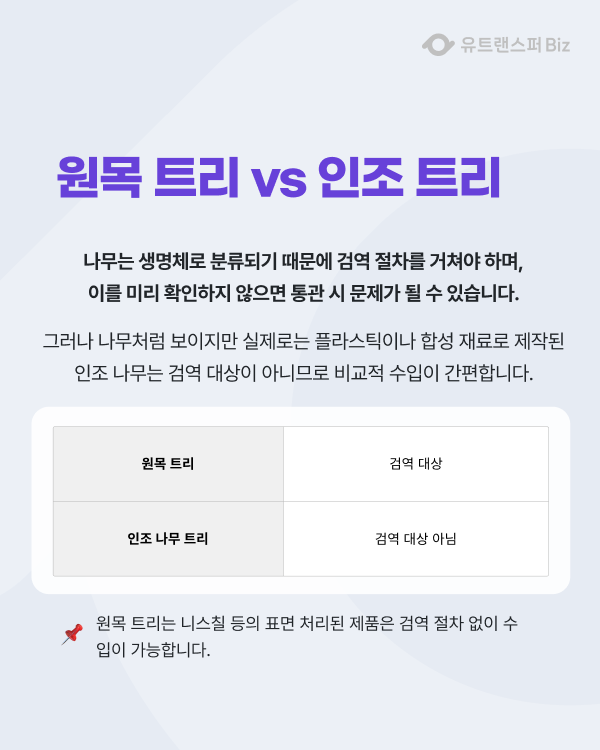 가짜 나무(인조 나무)는 검역 대상이 아니므로 비교적 수입이 간편합니다.