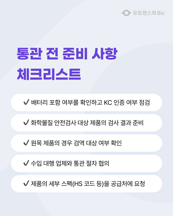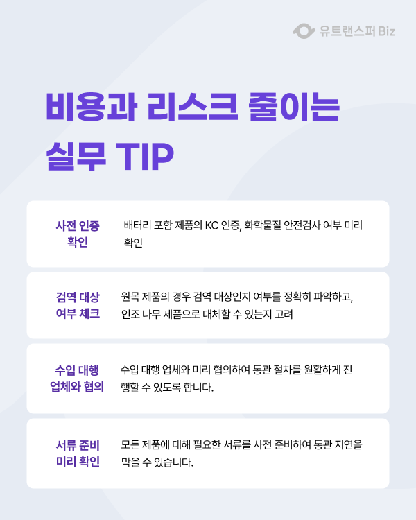 이를 미리 확인하지 않으면 통관 시 문제가 될 수 있습니다.