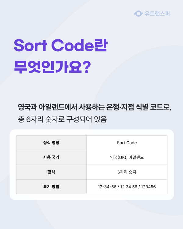 Sort Code는 영국과 아일랜드에서 사용하는 은행·지점 식별 코드로,