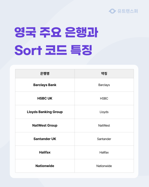 3. 영국 주요 은행과 Sort 코드 특징