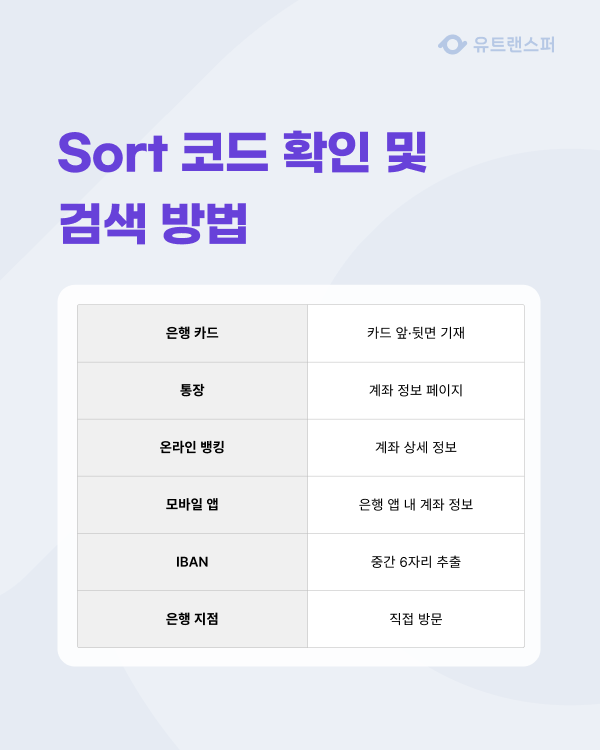 💡 Sort Code가 틀리면 송금 지연·반송 가능성 있으며,