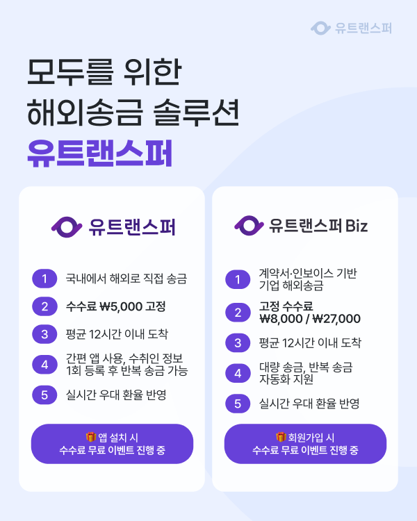 사업자·법인 송금이라면 유트랜스퍼Biz를 활용해