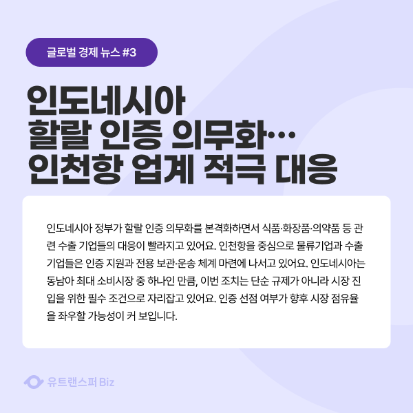 인도네시아 할랄 인증 의무화… 인천항 업계 적극 대응