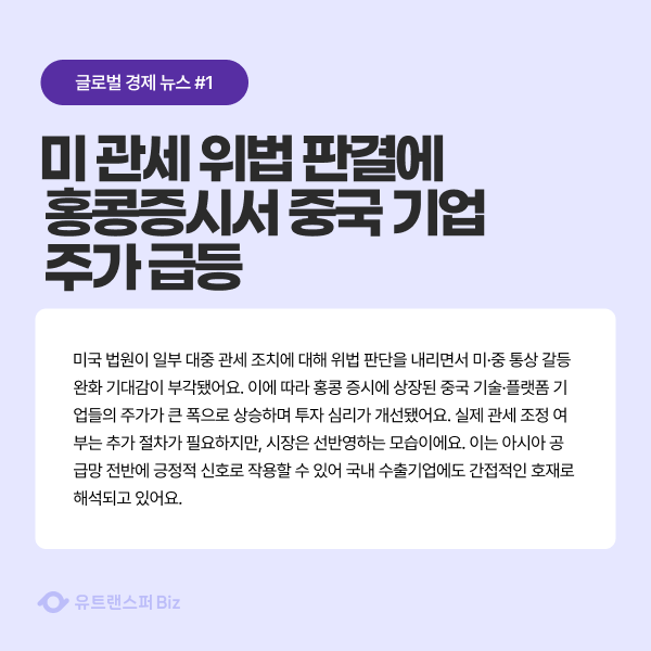 미 관세 위법 판결에 홍콩증시서 중국 기업 주가 급등