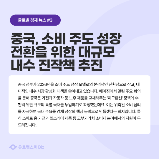 중국 정부가 2026년을 소비 주도 성장 모델로의