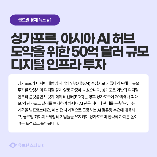 싱가포르, 아시아 AI 허브 도약을 위한 50억 달러 규모 디지털 인프라 투자
