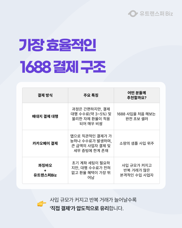 👉 사입 규모가 커지고 반복 거래가 늘어날수록 '직접 결제'가 압도적으로 유리합니다.