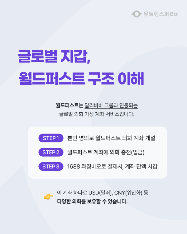 ➔ 1688에서 콰징바오로 결제할 때 이 월드퍼스트 계좌의 잔액이 차감되는 구조