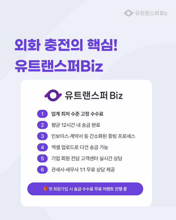 유트랜스퍼Biz = 그 계좌에 돈을 가장 싸고 빠르게 쏴주는 외환 파트너