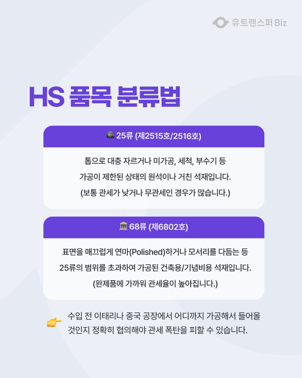 대리석 수입, 화강암 수입 전 정확한 HS 코드 확정