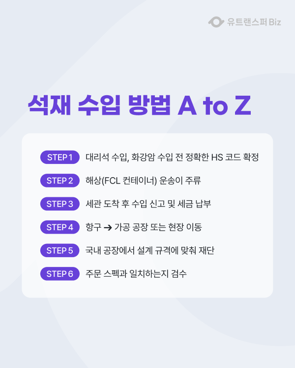 석재 수입 시 유트랜스퍼Biz를 이용한다면?