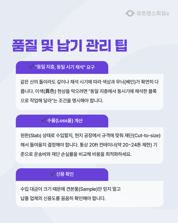 3. 석재 수입 실무자를 위한 품질 및 납기 관리 팁