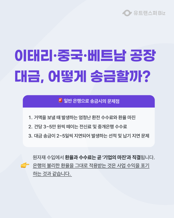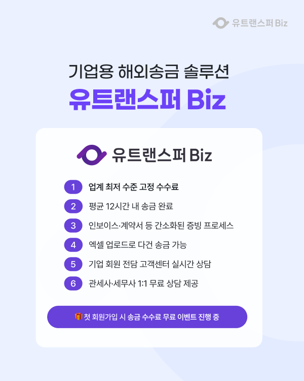 이제 수많은 수입 기업이 믿고 쓰는 유트랜스퍼Biz와 함께