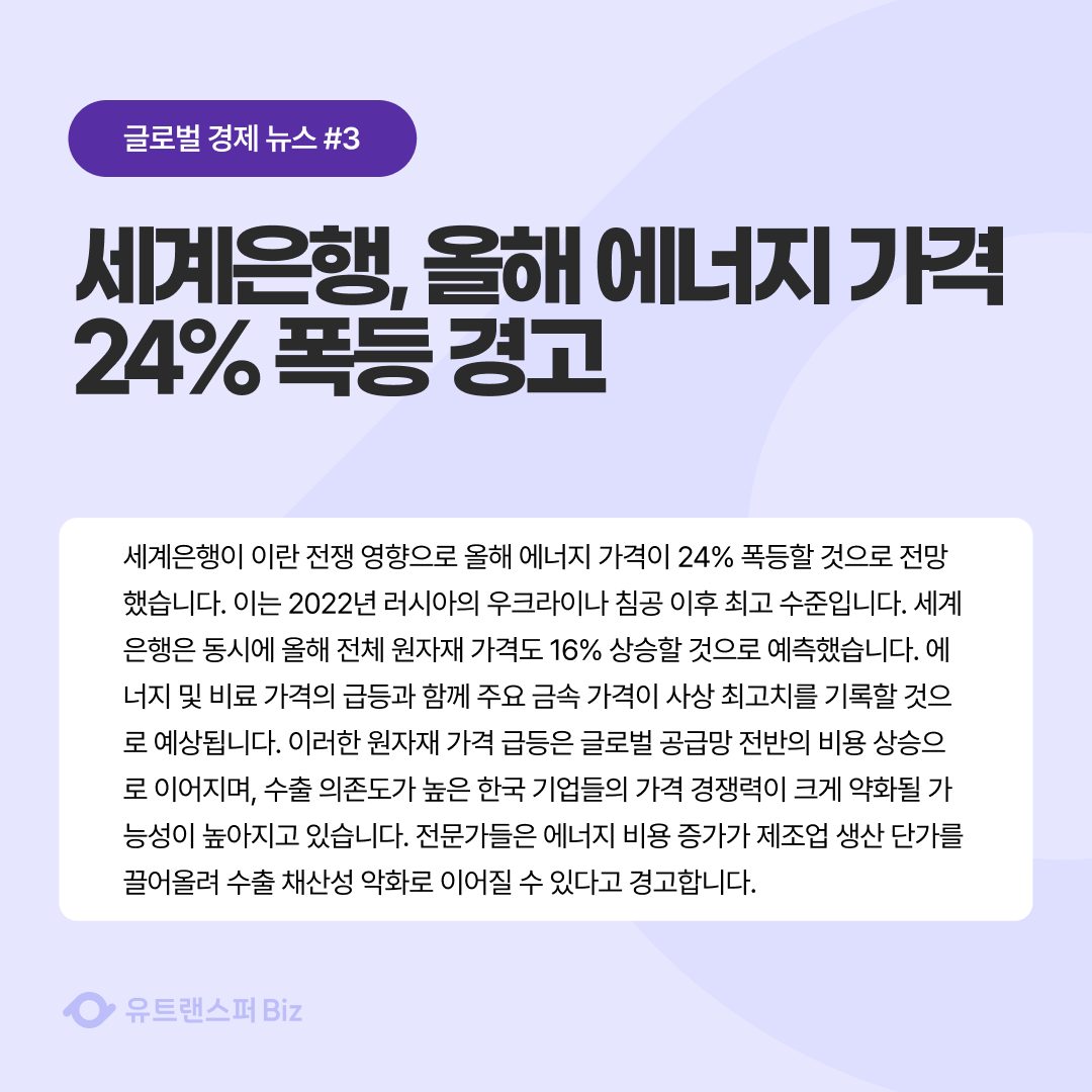 에너지 및 핵심 자원 가격의 가파른 오름세는 반드시 대비해야 할 리스크입니다.